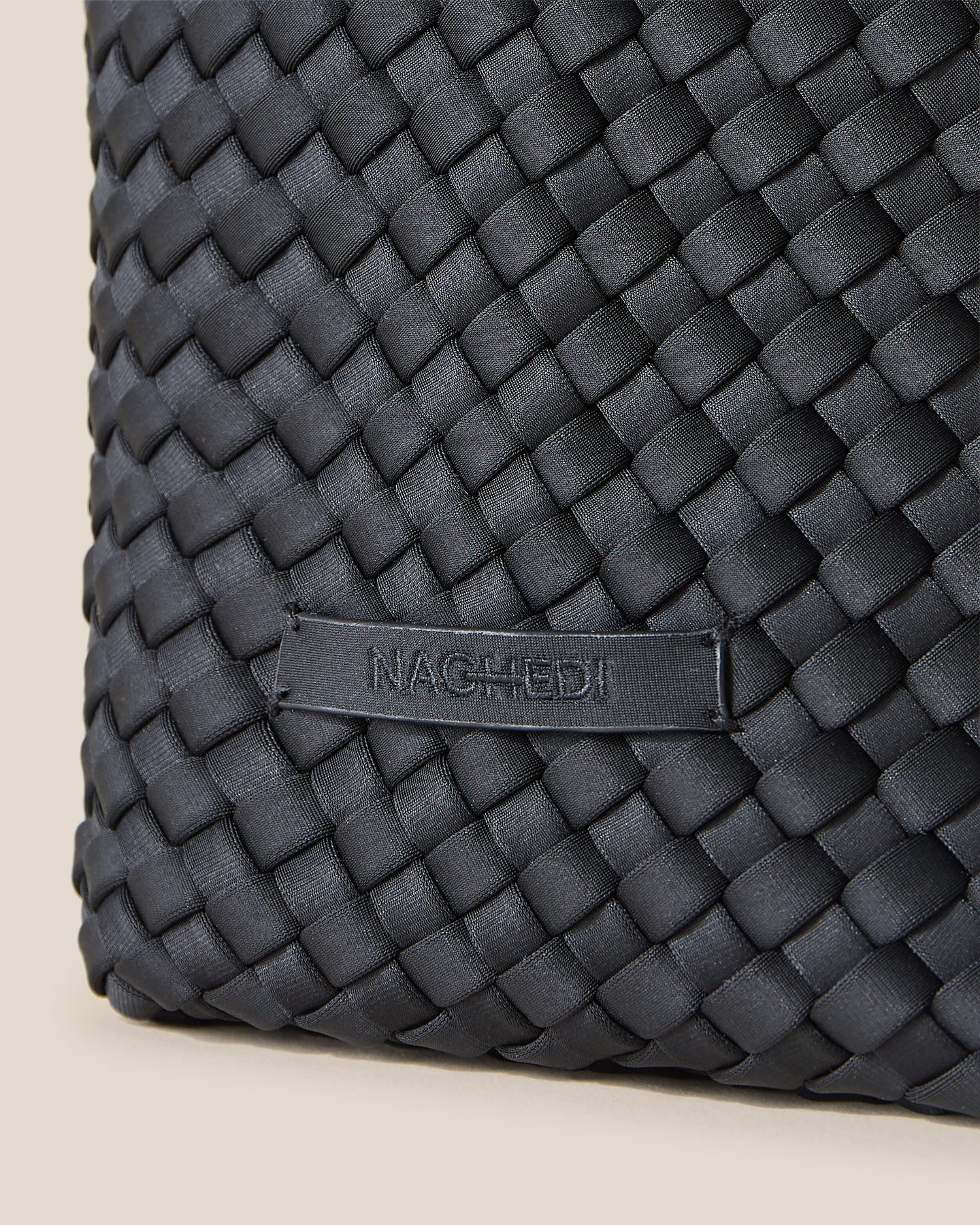Handwoven neoprene in true black. With an effortless and playful silhouette, the Kyoto Clutch adds dimension to evening outfits.