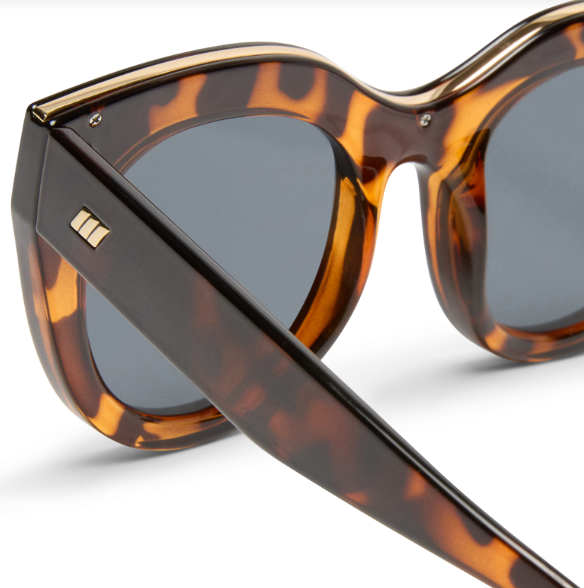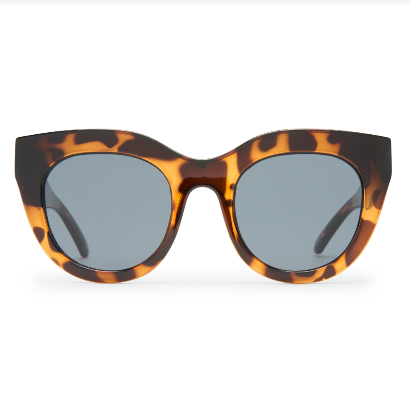 A favourite of Meghan Markle and Olivia Palermo the AIR HEART silhouette is an iconic Le Specs style. With oversized and dramatic proportions reminiscent of a cat eye the style is designed with a thick semi-translucent tan frame and luxurious metal top bar inlay then fitted with premium zero base smoke flat lenses. The perfect statement sunglass to suit all face shapes.