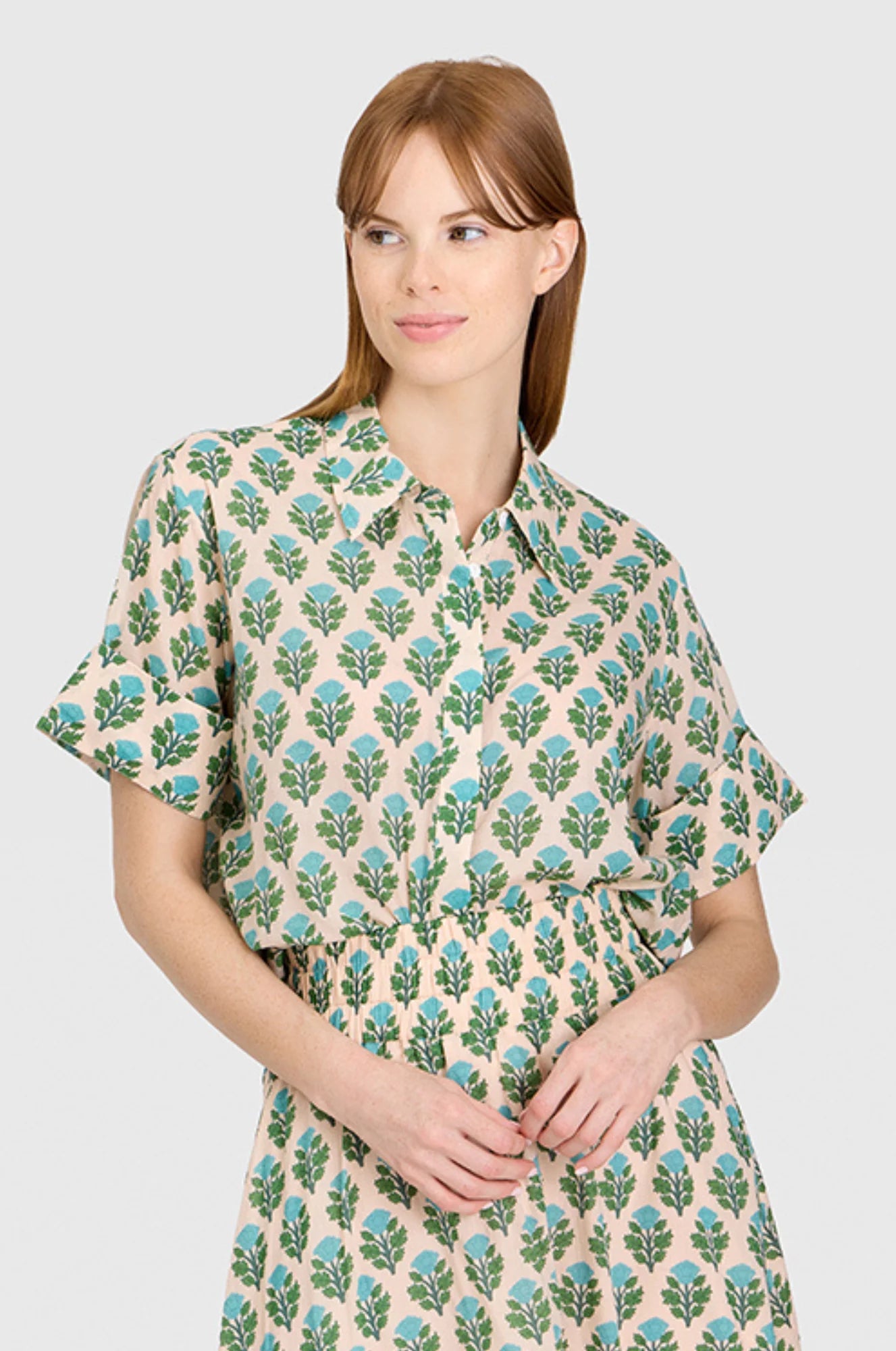 New this Spring, the Club Shirt will quickly become a favorite. This effortlessly chic piece features folded sleeves and a flattering cropped cut that elevates any look. Whether layered or worn solo, it is the perfect balance between polished and relaxed, making it an ideal choice for warm weather styling.