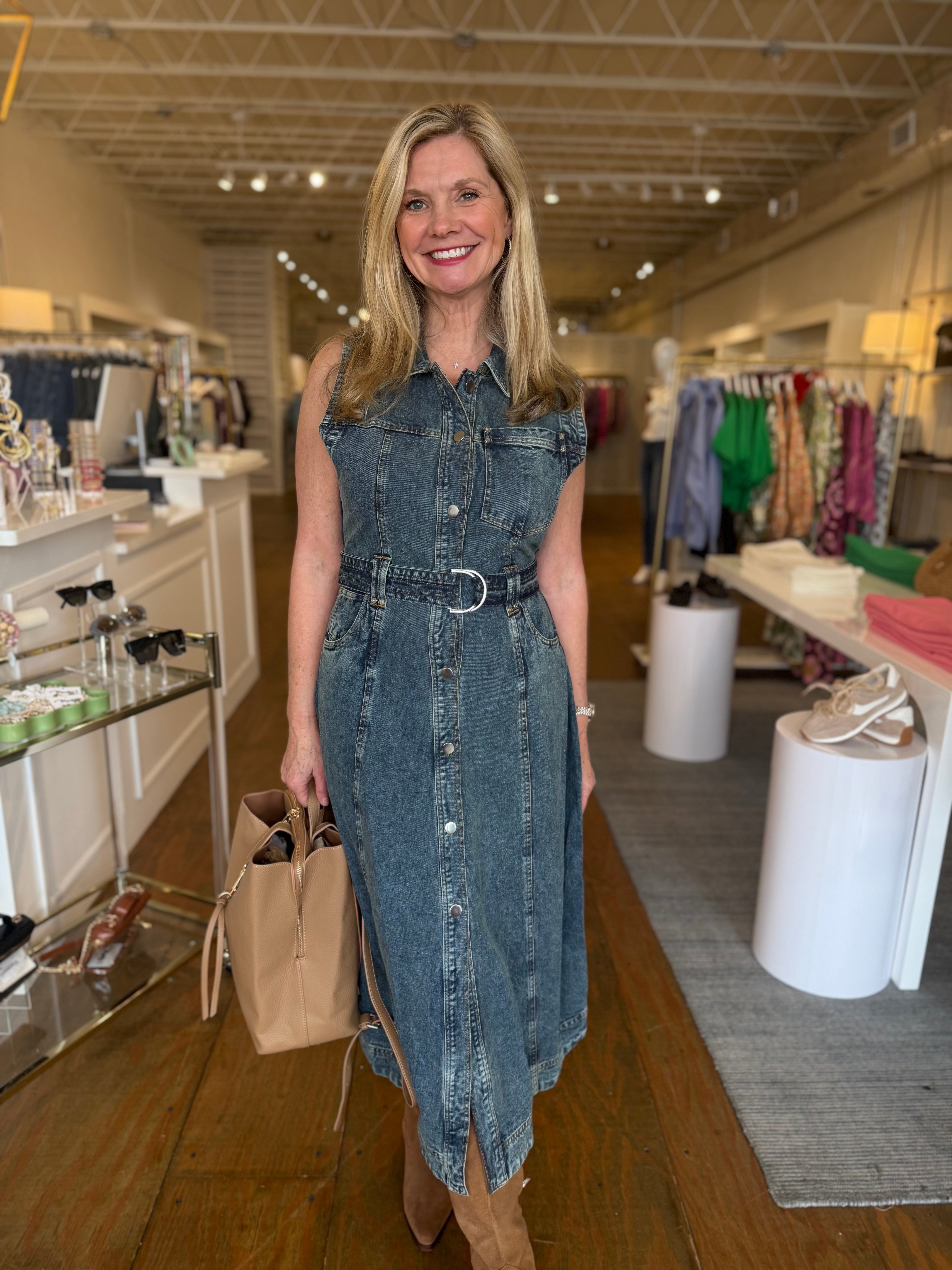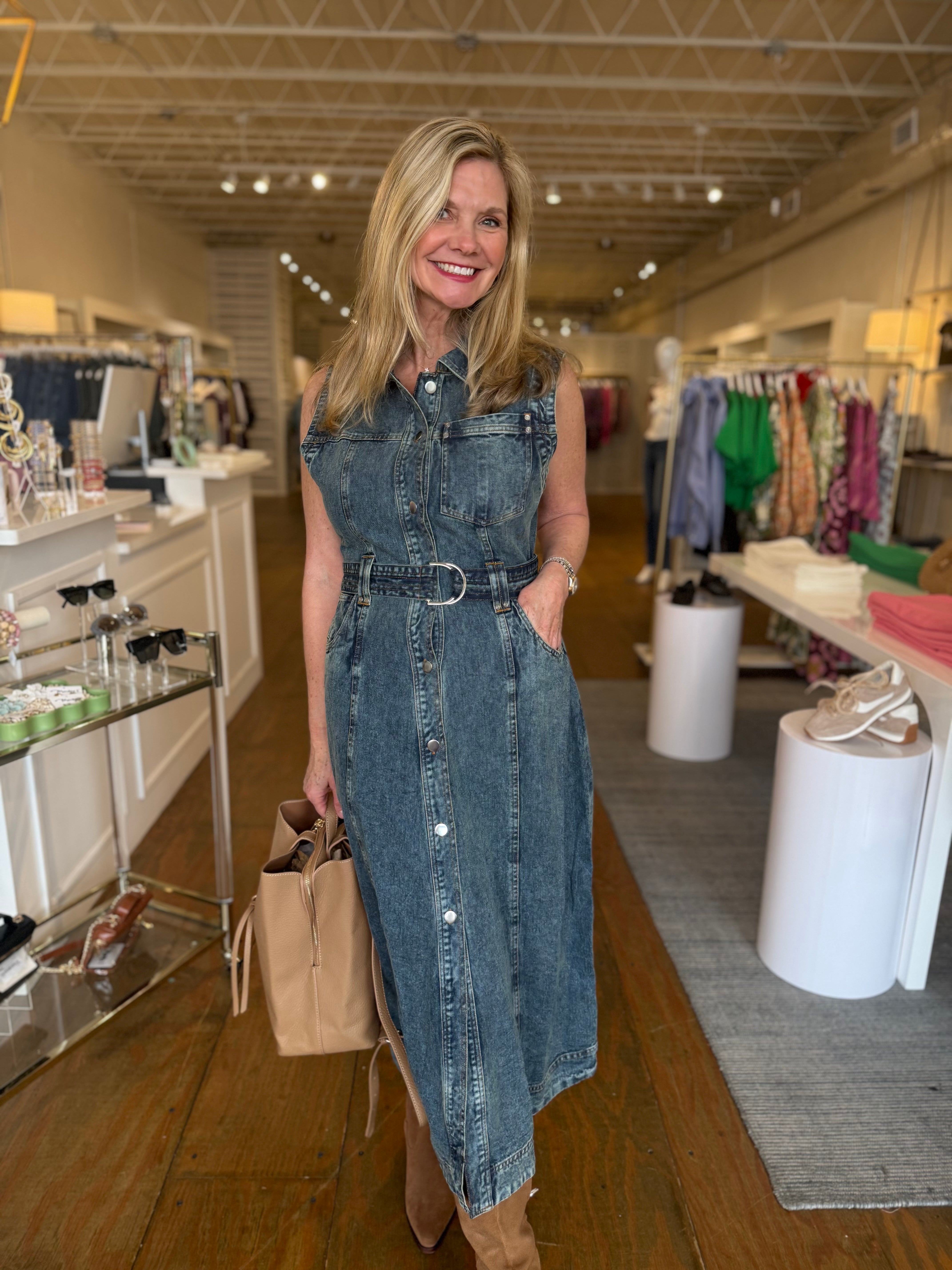 DENIM SLEEVELESS DRESS, DENIM WASH