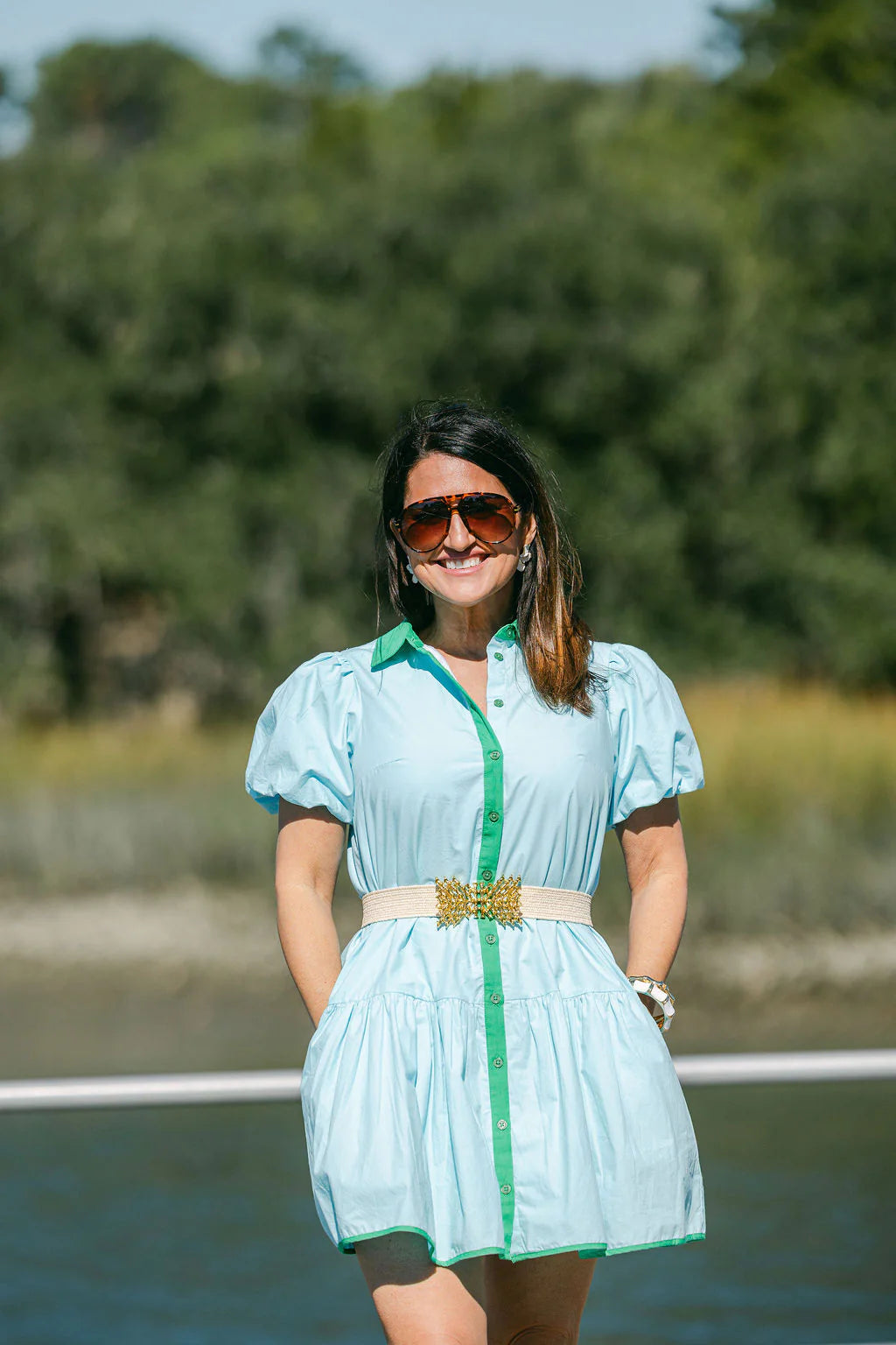 This dress just doesn't quit. Whether you wear it loose and simple, or belt it for more of an A-line look, it gets you exactly where you want to be. We love how the green accents play well with this solid blue...and it has pockets!