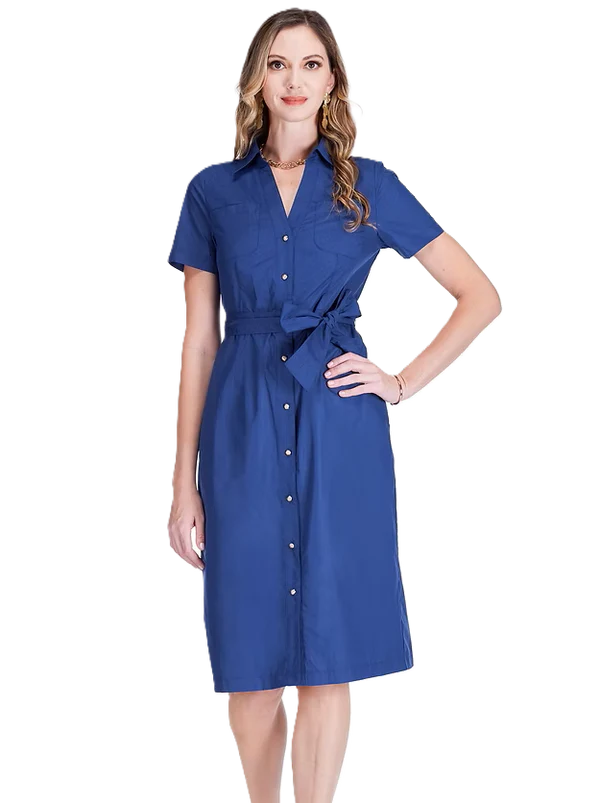 POCKET MIDI SHIRTDRESS, NAVY