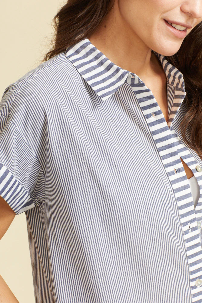 RIGA SHORT SLEEVE MIDI DRESS, NAVY STRIPE