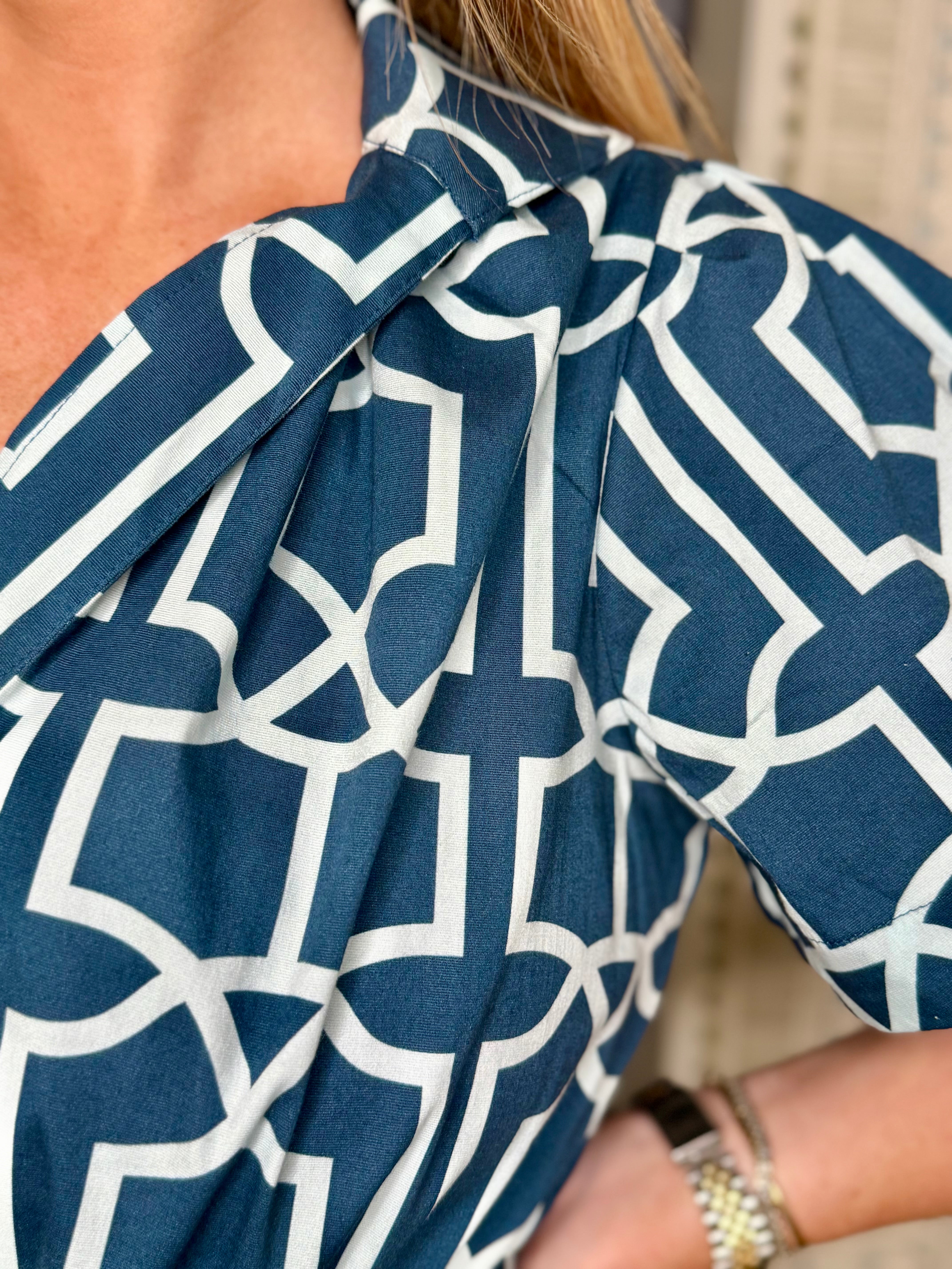 Meet our friend Gretchen! If you love the easy wear of Catherine you will LOVE her just as much! Our signature stand collar, front button pockets, softly pleated sleeves, bamboo ring belt and stunning side slits make this the PERFECT dress!