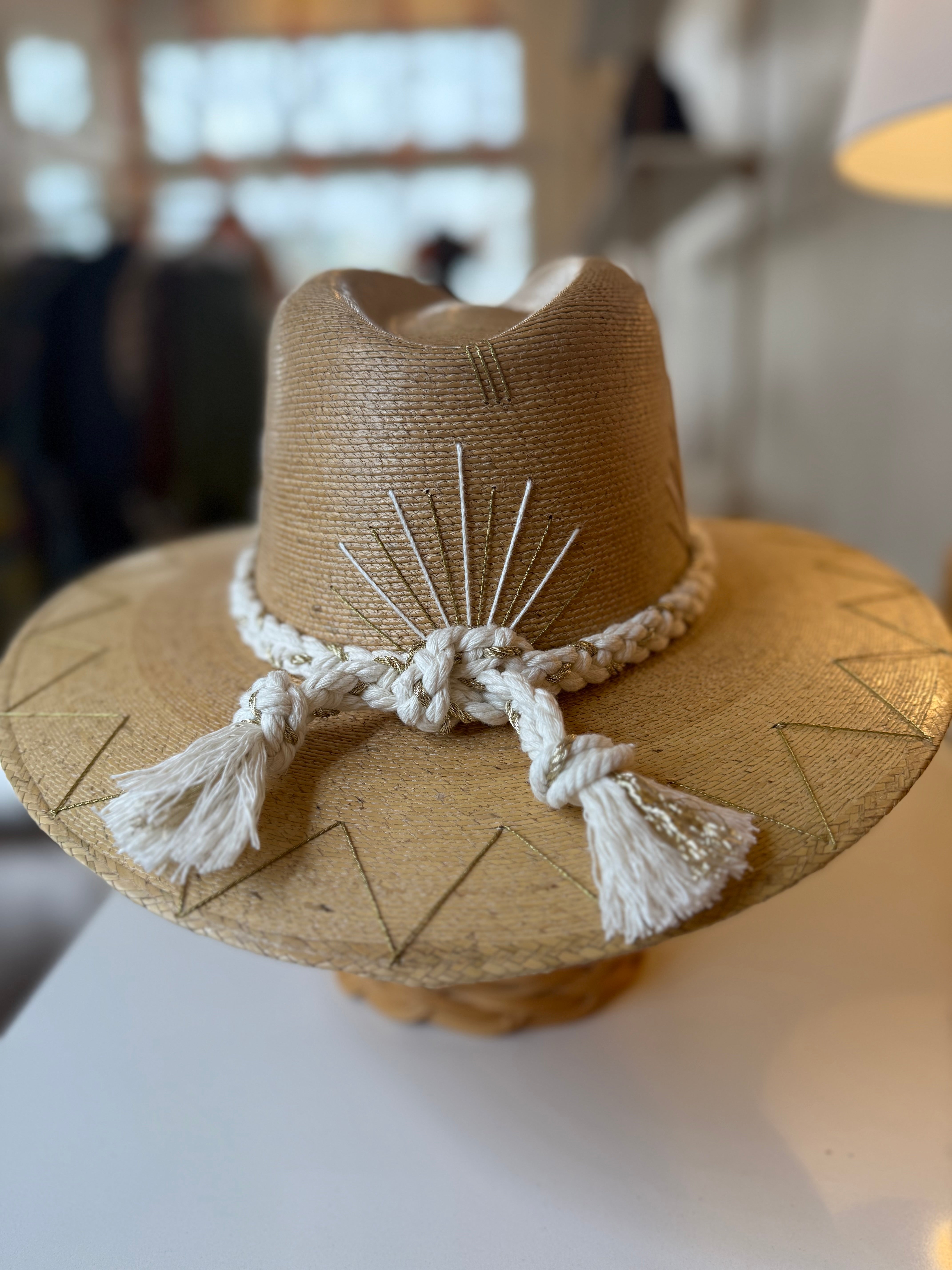TISPY THREADS CABO HAT, NATURAL PALM GOLD AND CREAM - MEDIUM