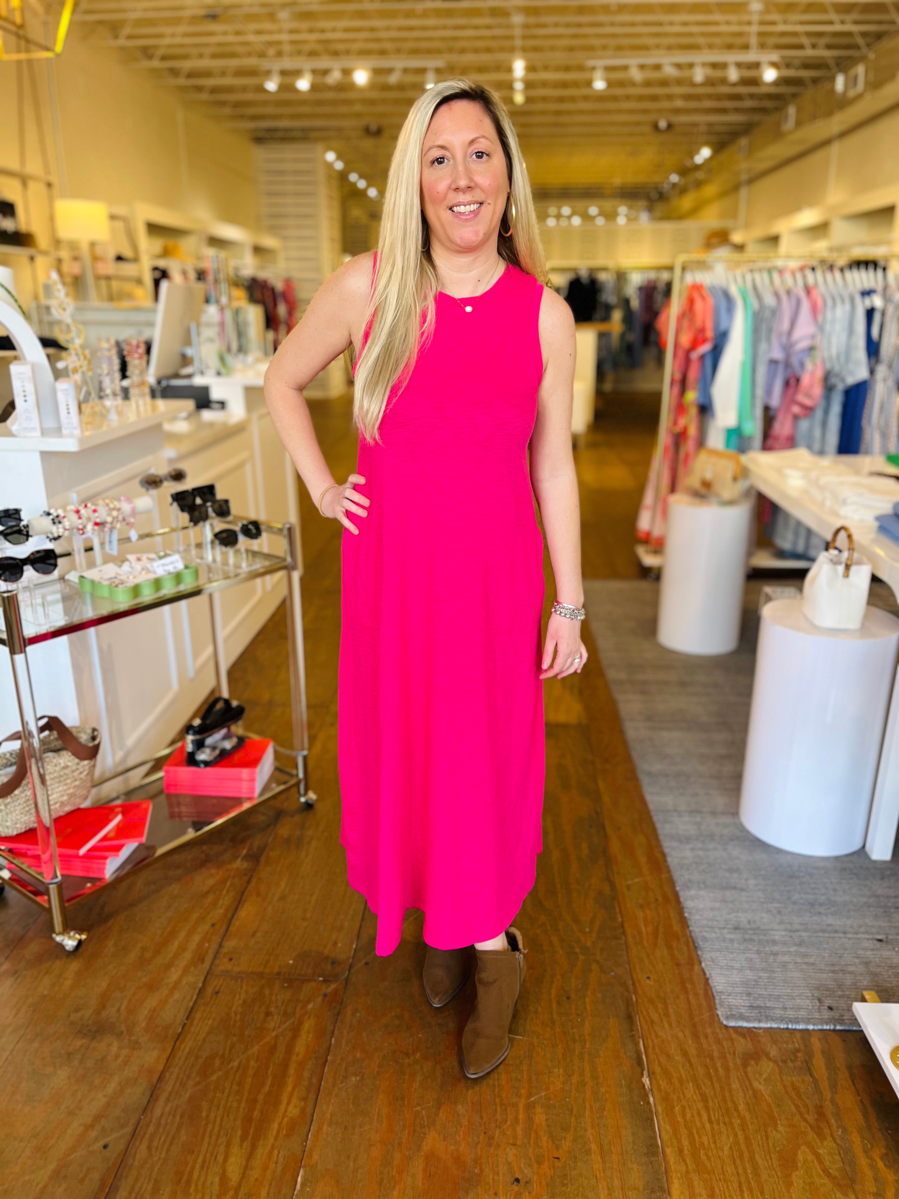 A-LINE MAXI PCOKET DRESS CAP SLEEVE, SLUB TAFFY